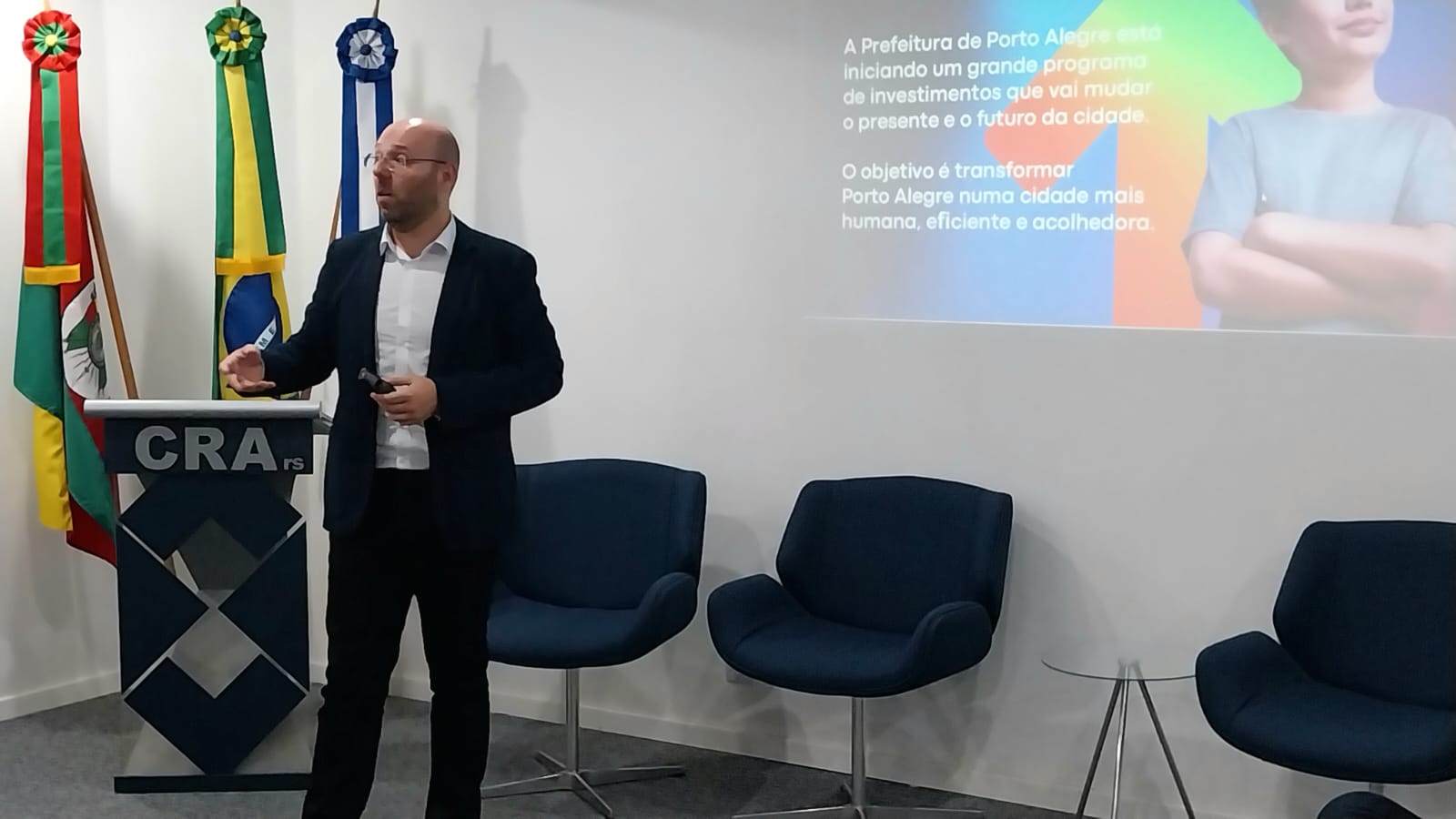 O secretário adjunto de Planejamento e Gestão de Porto Alegre, Jonas Machado, apresentou na terça-feira, 3, o POA Futura, o maior pacote de investimentos da história da capital gaúcha, aos integrantes do Conselho Municipal de Ciência e Tecnologia (Comcet). O encontro ocorreu no auditório do Conselho Regional de Administração do Rio Grande do Sul.  Â