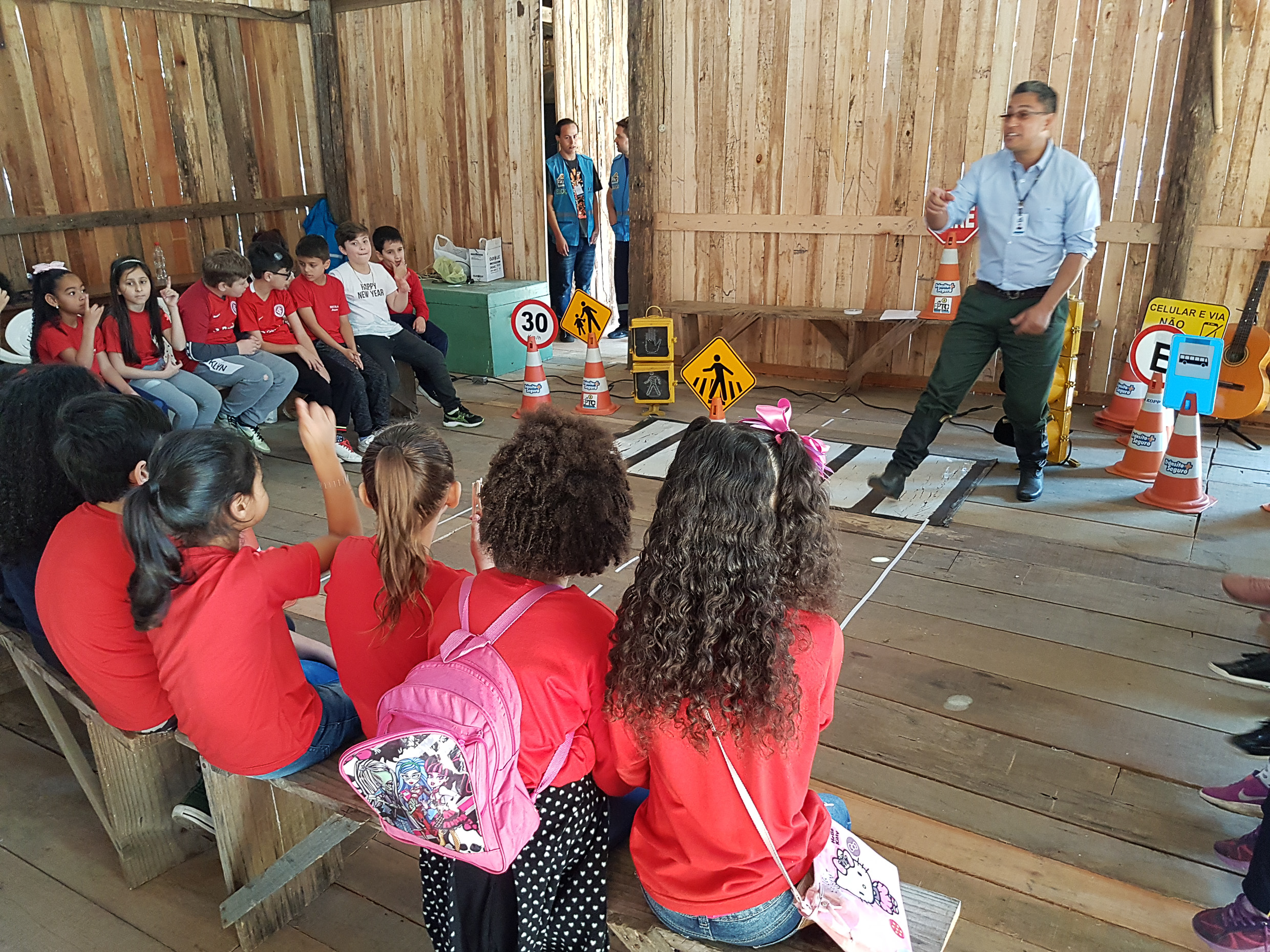 As 33 crianças, de seis a nove anos, participaram ativamente da esquete teatral com base em motivos gaúchos, com orientações sobre o trânsito seguro, principalmente em relação aos cuidados sobre as travessias e o respeito à sinalização em geral. “São dicas importantes para a gurizada, reforçando sempre a necessidade de atenção para as travessias, sobre os riscos de atropelamentos, além da linguagem dos sinais em geral”, afirma Diego Marques, da Coordenação de Educação para a Mobilidade (CEM) da EPTC.